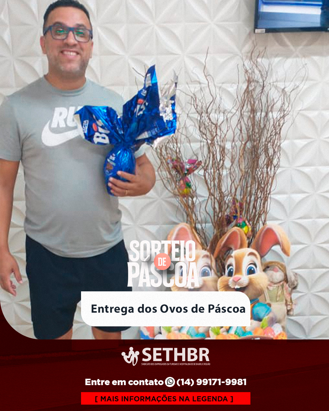 A entrega dos ovos de Páscoa do Sindicato SETHBR foi um sucesso total! Queremos parabenizar cada um dos 50 sorteados que garantiram essa delícia para celebrar com a família.